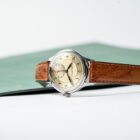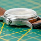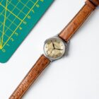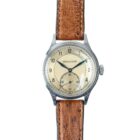 This specific Jaeger-leCoultre is from 1939 and runs on the handwinding 469/A movement. This in-house movement is placed inside the 34mm stainless steel case. The dial has gathered a warm champagne color patina over its 80 year+ life and is in absolute mint condition. The Sector dial features Arabic numerals and a sunken sub dial for the seconds hand and has no lume. The blued sword hands line up perfectly with the hour and minute track at the rim of the watch. To top it all off is the domed crystal, creating a visibly satisfying look on this perfect dial. The condition of this watch is excellent for its age, with some small marks on the case and caseback.